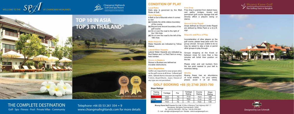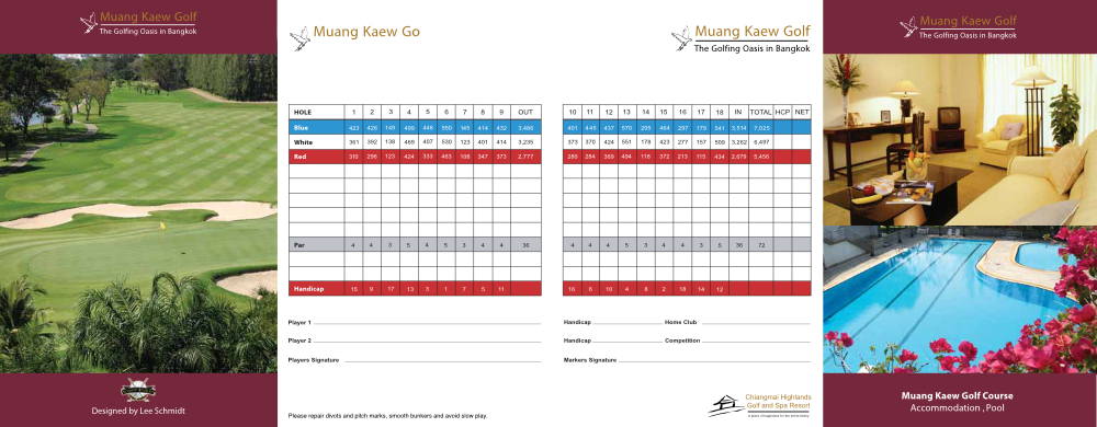 ความกว้างแฟร์เวย์โดยเฉลี่ย | 35-45 หลา |